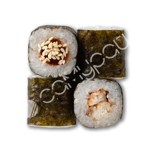 Копченый угорь,авокадо,сливочный сыр,кунжут,рис