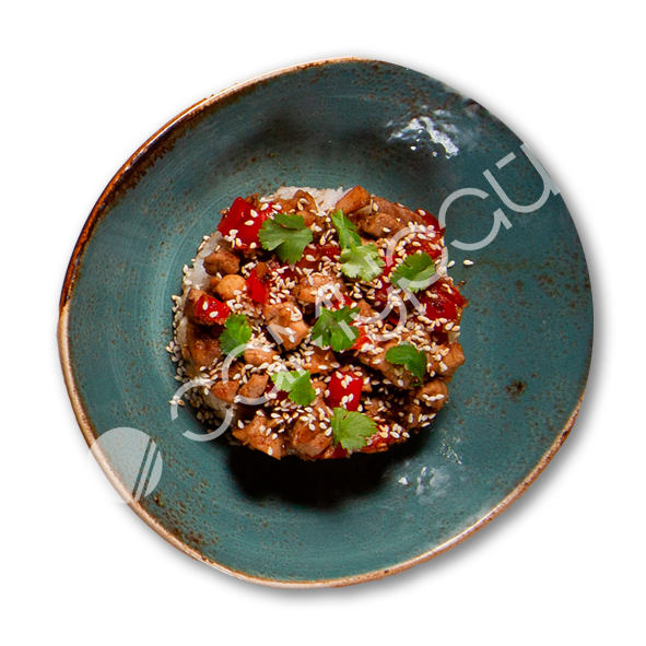 Куриная грудка гриль, свежий помидор, шиитаке, начинка том ям, рис