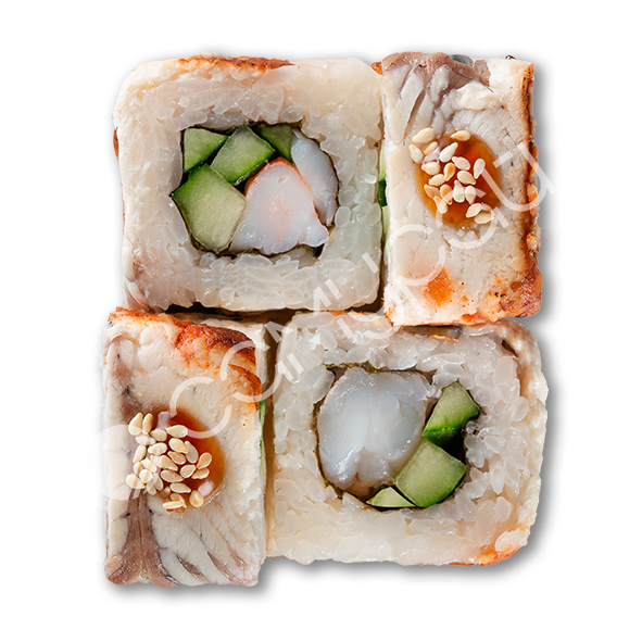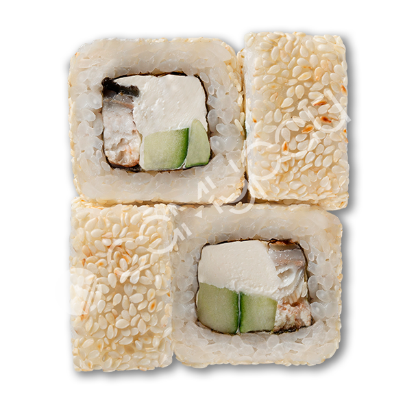Сливочный сыр,угорь,тигровая креветка,огурец,соус унаги,кунжут