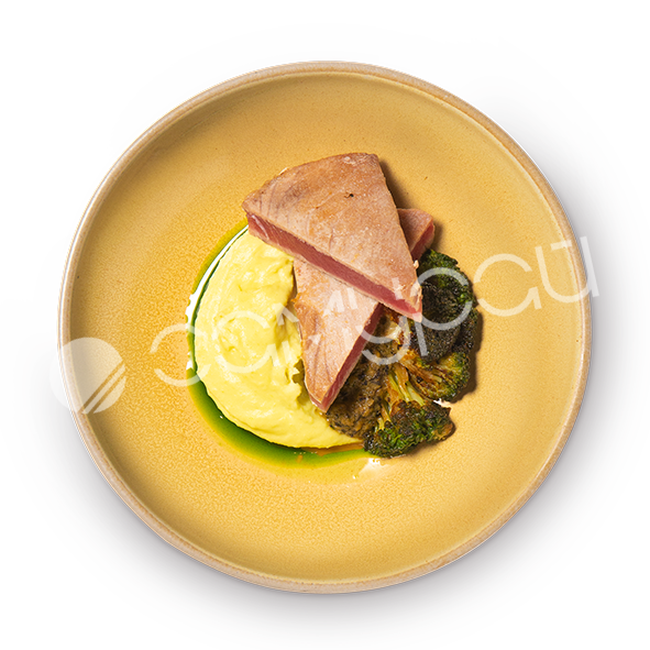 Стейк тунца с картофельным кремом