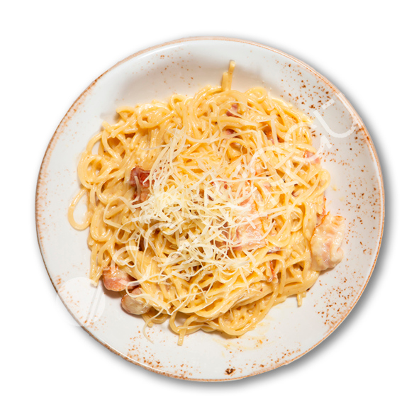 Классическая итальянская паста, обжаренный бекон, сливочный соус, сыр пармезан