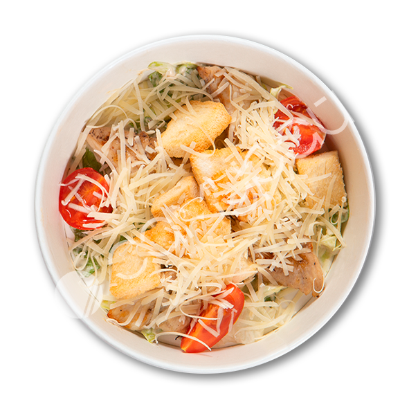 Жареное куриное филе ,помидор,лук порей,сыр пармезан,лист салата,соус цезарь