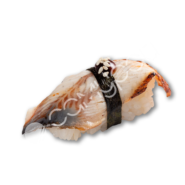 Копчёный угорь, жареный лосось, помидор, соус тартар, соус унаги, кунжут