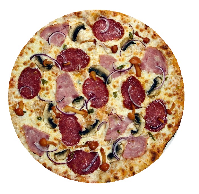 Сливочный сыр, куриная грудка, шампиньоны, ореховый соус, сыр пармезан, лук порей, кляр