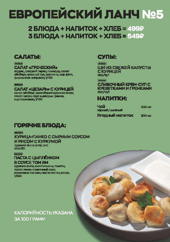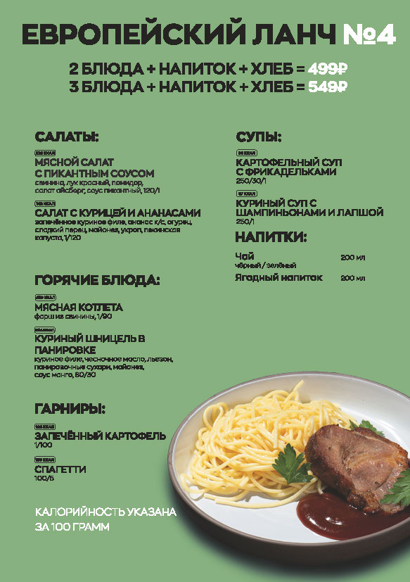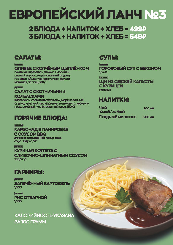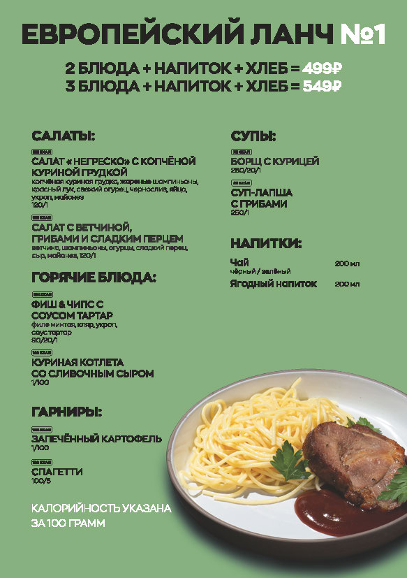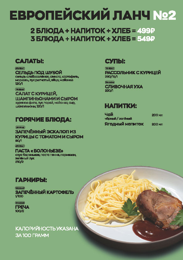 Каждую неделю в кафе представлен один вид ланча. Какой ланч на этой недели представлен в кафе вы можете узнать позвонив нам.